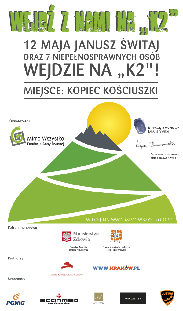 12 maja 2012, a więc już w najbliższą sobotę o godz. 12.00 wraz z Januszem na krakowskie „K2” wyruszy siedem niepełnosprawnych osób z woj. Małopolskiego i okolicznych województw. Większość uczestników wyprawy ma czterokończynowe porażenie, w związku z tym będą się poruszać na elektrycznych wózkach inwalidzkich.